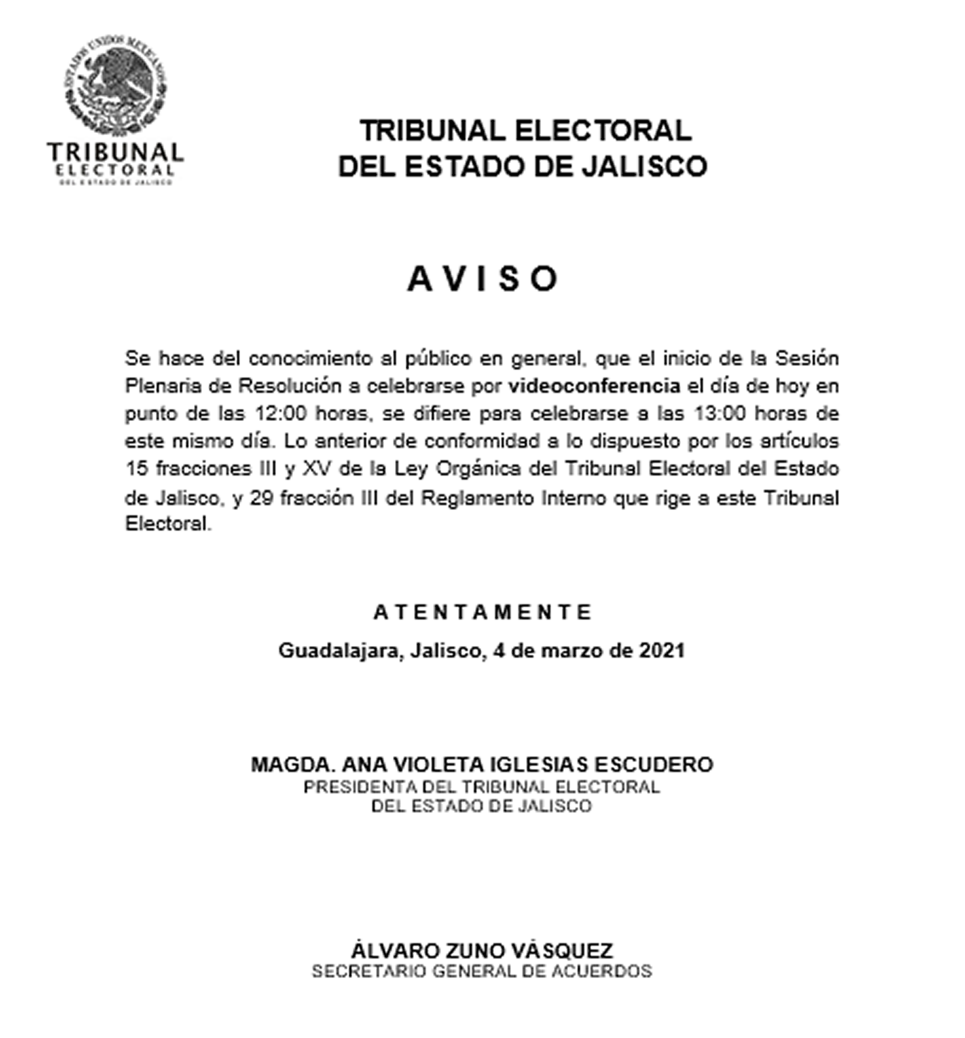Listado de sesiones ordinarias y extraordinarias