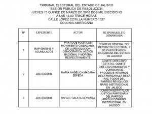 SESIÓN PÚBLICA DE RESOLUCIÓN QUE TENDRÁ VERIFICATIVO EL PRÓXIMO JUEVES 15 QUINCE DE MARZO DE 2018 DOS MIL DIECIOCHO, A LAS 13:00 TRECE HORAS.