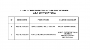 LISTA COMPLEMENTARIA CORRESPONDIENTE A LA CONVOCATORIA DE FECHA: MIÉRCOLES 14 CATORCE DE MARZO DE 2018 DOS MIL DIECIOCHO, PARA LA SESIÓN PÚBLICA DE RESOLUCIÓN A CELEBRARSE CON FECHA JUEVES 15 QUINCE DE MARZO DE 2018 DOS MIL DIECIOCHO, A LAS 13:00 TRECE HORAS